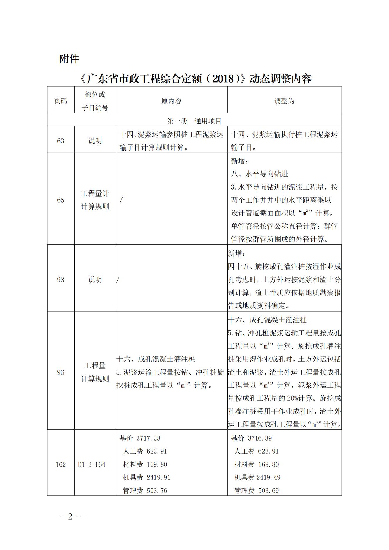 近期,我站组织专家研析了广东省建设工程定额动态管理系统收集的反馈意见,现将《广东省市政工程综合定额(2018)》旋挖成孔灌注桩、旋挖桩入岩增加费等调整内容印发你们。本调整内容与我省现行工程计价依据配套使用,除合同另有约定外,已经合同双方确认的工程造价成果文件不作调整,请遵照执行。
